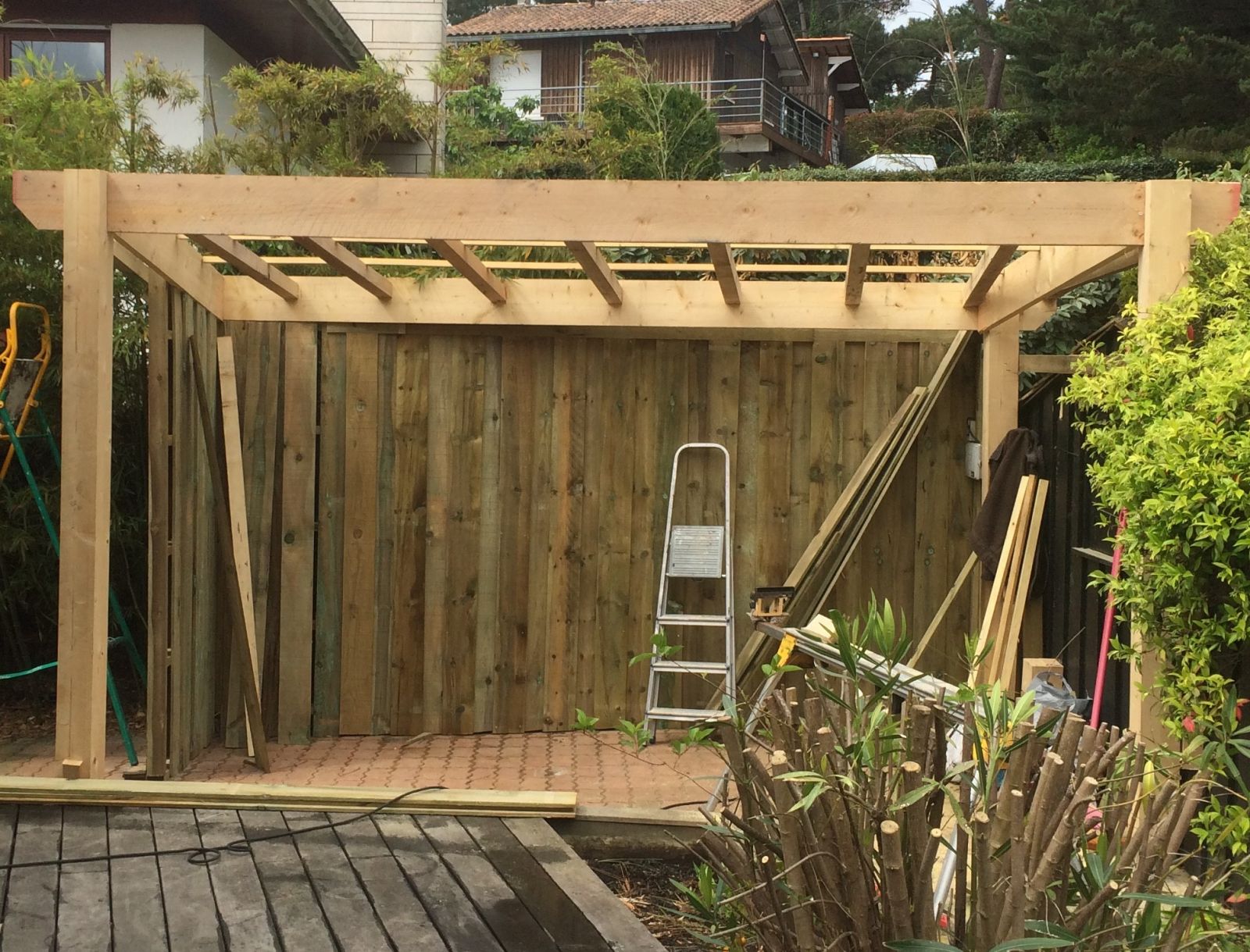 Pour un de nos clients, nous avons réalisé un abris en bois sur mesure au sein de sa propriété sur le Bassin d’Arcachon. L’abris en bois est en Pin traitement classe 3 et la toiture de l’abris est en bac acier.