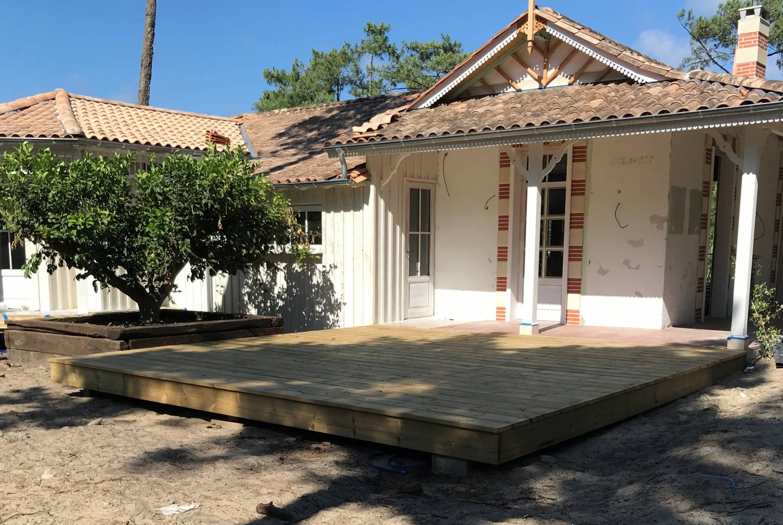 Pour un de ses clients l’entreprise LEPAGE CYRIL a réalisé des terrasses en bois sur mesure en essence de Pin ainsi qu'une pergola en Pin sur mesure sur la presqu'ile de Lège Cap Ferret.