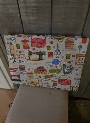 nous lui avons donc fabriqué sa lampe cadre personnalisée avec des ciseaux, mais également une machine à coudre.