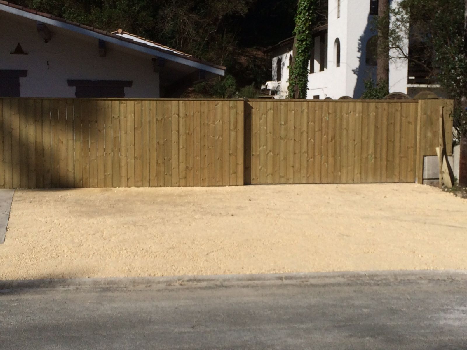 Nous avons également réalisé pour ce client un portail en bois coulissant sur mesure.