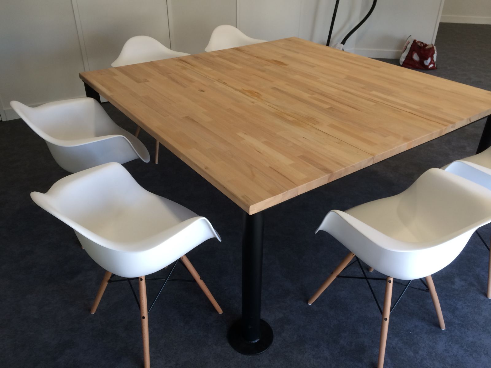 Table bois avec pieds en ferrailles, aux dimensions de 1m80 X 1m80